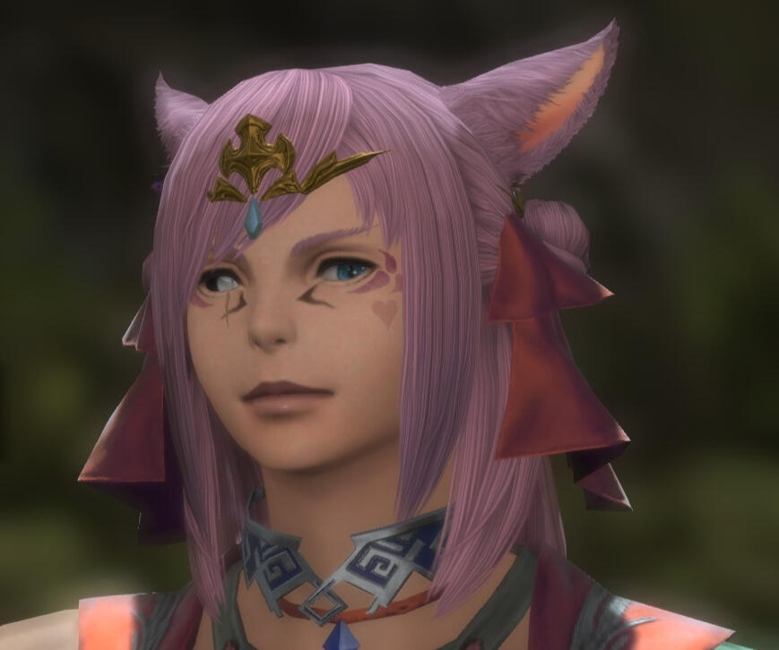 CARRD Ameh’ya is a famous dancer who currently resides at Radz-at-Han. During an incident where voidsent had stormed the city, the miqo’te’s right eye was injured and corrupted by the darkness from a voidsent lord. That voidsent lord was Eros. Now the miqo’te was a tether for them to come easily and stay within the Source. Eros believes Ameh’ya is very talented in both dancing and fighting with no doubt in their mind, but the feistiness of the pink one they can do without. The two tend to butt heads often. Though when the pink miqo’te is in need, Eros will come to save him no matter where he is. They do have a fondness for the smaller man and are a bit possessive of him as well.